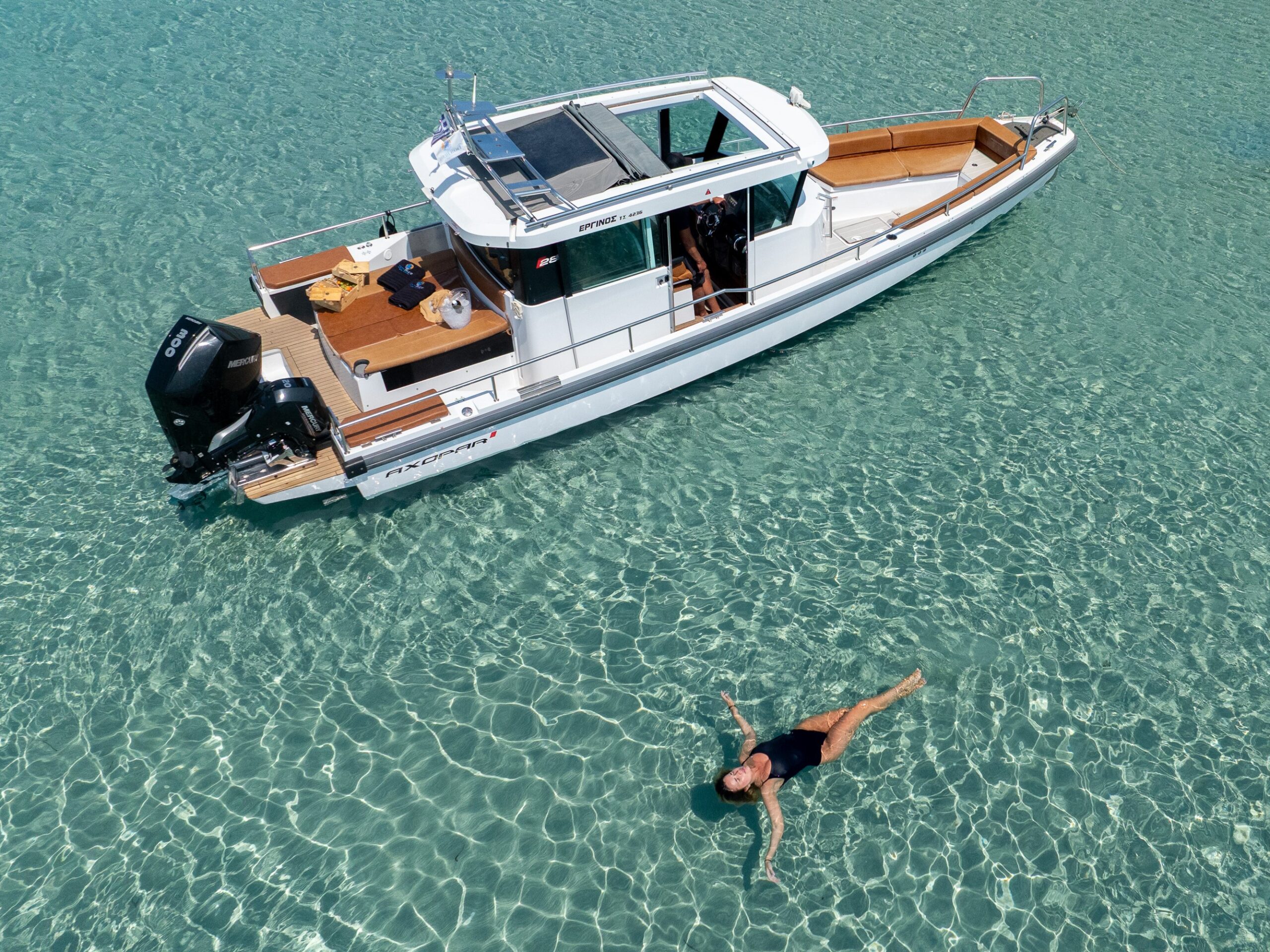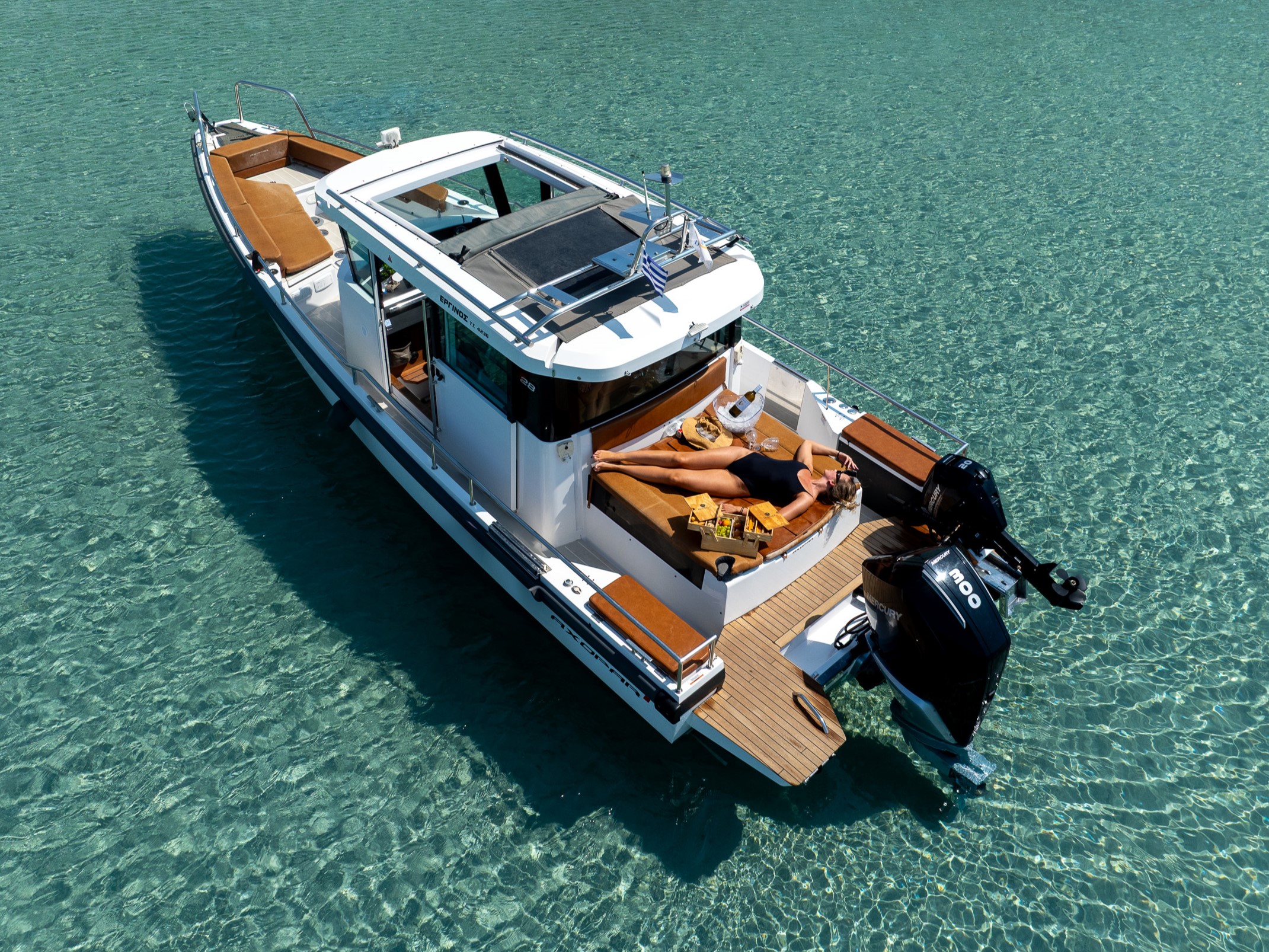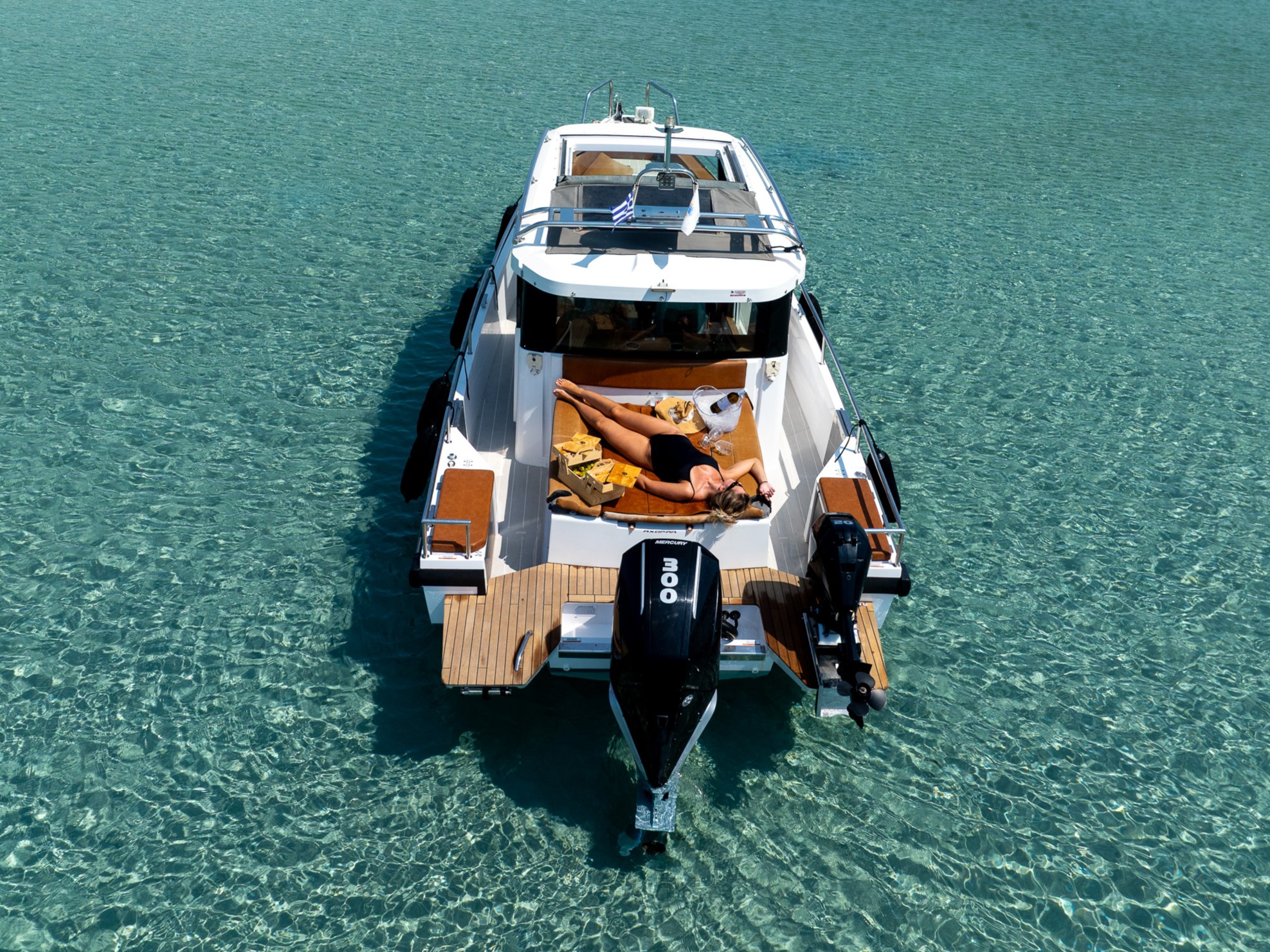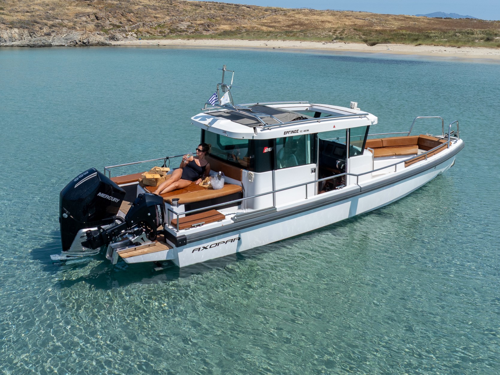 Indulge in an unforgettable sea experience with Axopar. Renowned for its cutting-edge innovation, superior handling, and pure sense of adventure, the Axopar Cabin is the premier choice for private rentals and VIP Boat Transfers in Mykonos and Paros. This versatile craft features a sleek, modern design that adapts to any weatherāoffering a fully enclosed, bright cabin with a sliding canvas roof for those sunny Mediterranean days. Enjoy a smooth, dry ride thanks to world-class ergonomics, and relax on the spacious foredeck, where a social L-shaped lounge easily transforms into a premium sunbed.
